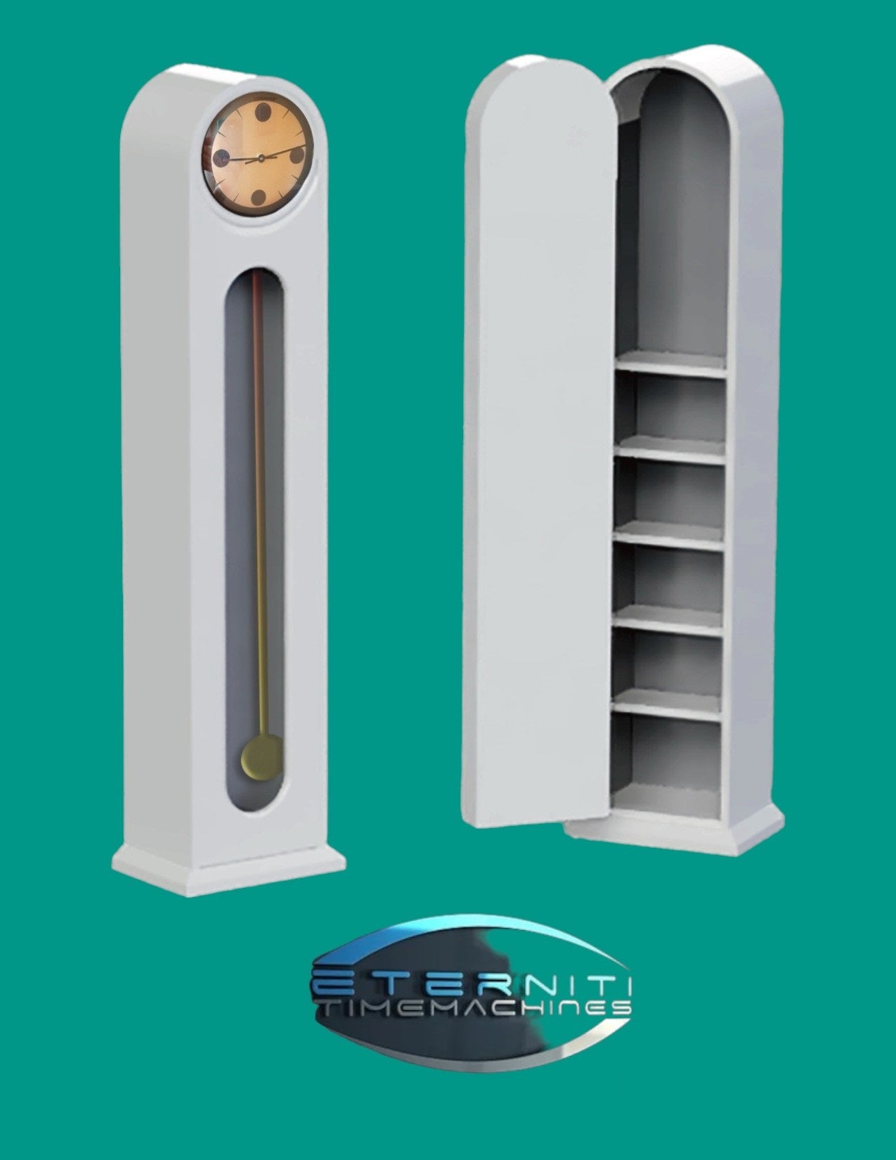 CUSTOM BUILT LUXURY CONTEMPO GRANDFATHER CLOCK with HIDDEN STORAGE, Adjustable Shelves, Locking. Beautiful GLOSS WHITE - Striking appearance and easily hides private items, clutter, etc.
